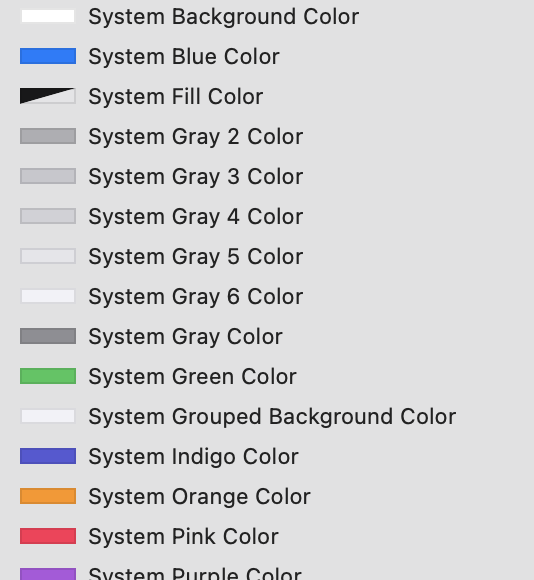 이 System Color는 현재 총 35개의 색상이 있고, 코드와 인터페이스 빌더에서 모두 사용이 가능하다고 하네요!